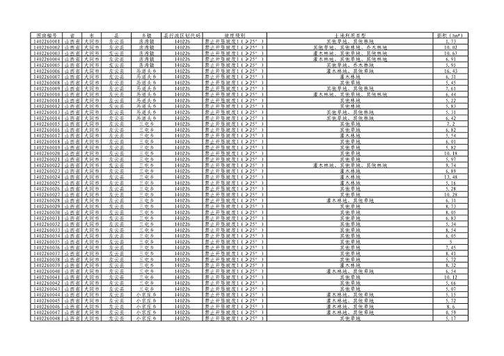 2.左云县禁止开垦陡坡地范围表