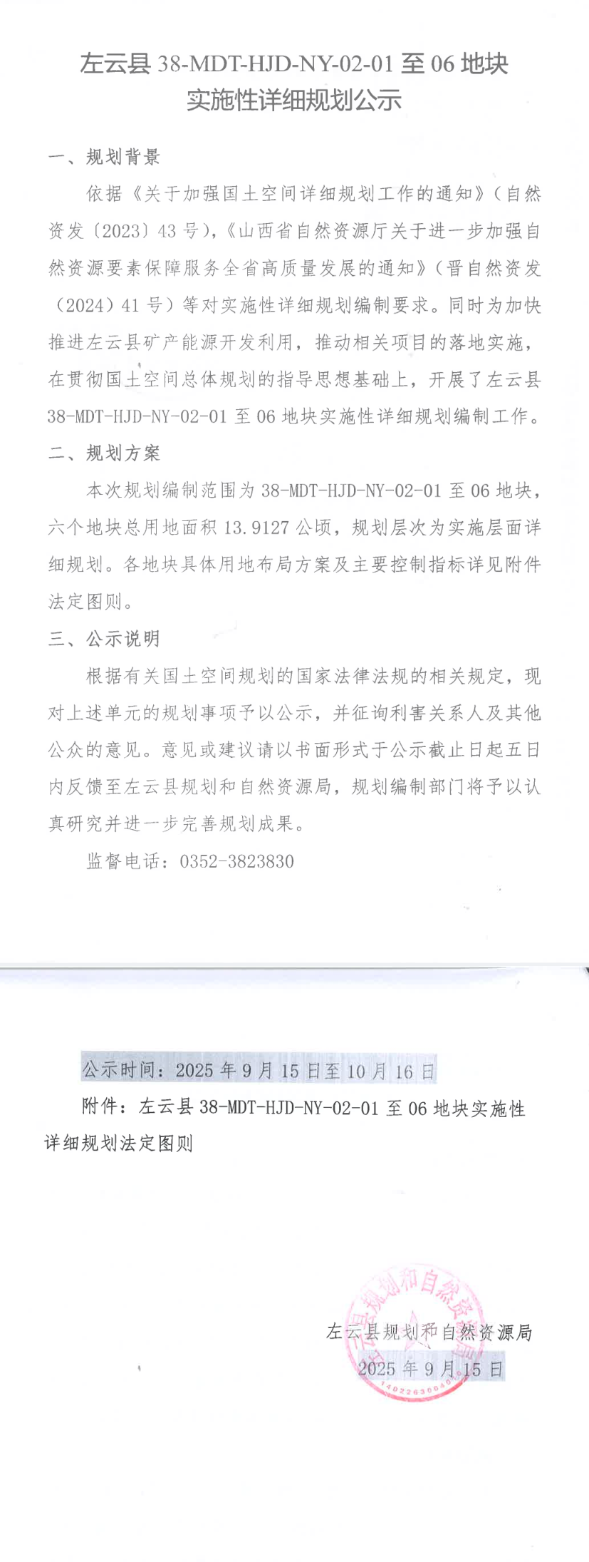 左云县38-MDT-HJD-NY-02-01至06地块实施性详细规划公示