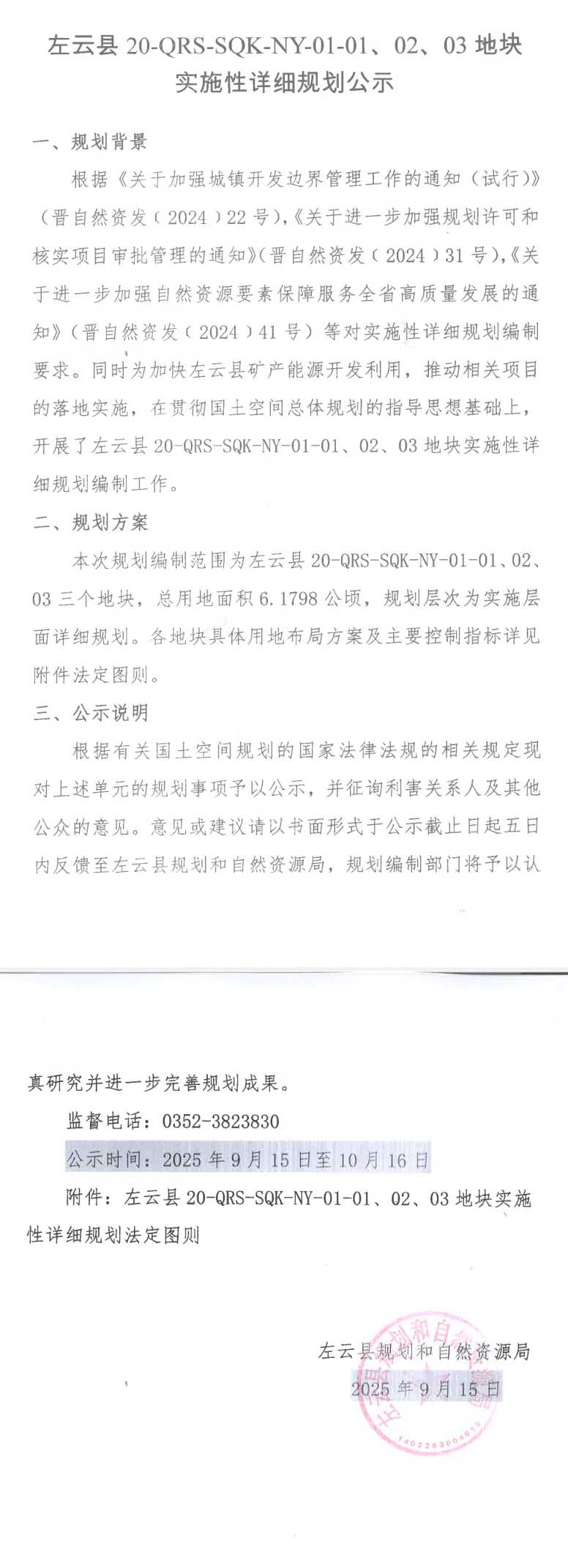 左云县20-QRS-SQK-NY-01-01、02、03 地块实施性详细规划公示