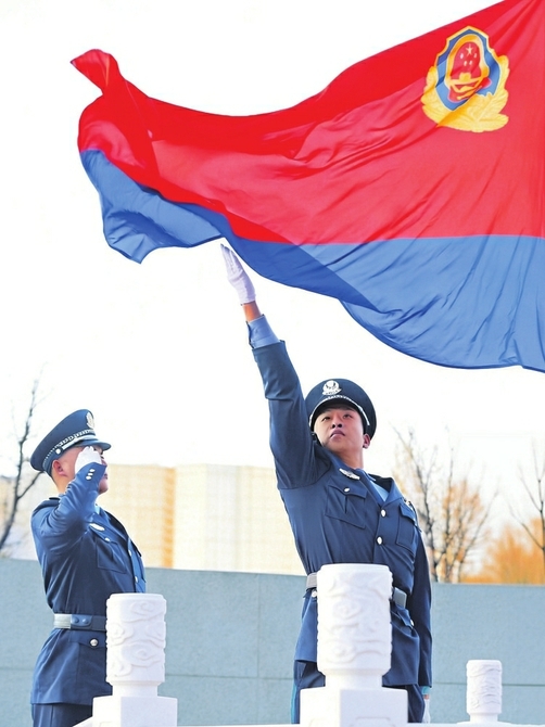 1月10日,第六个中国人民警察节当天,太原市公安局举行升警旗仪式。